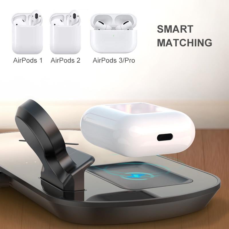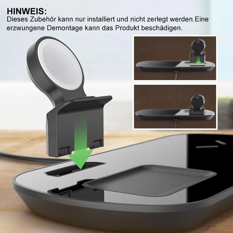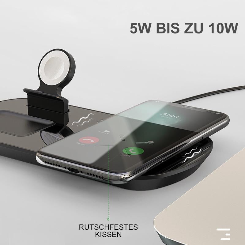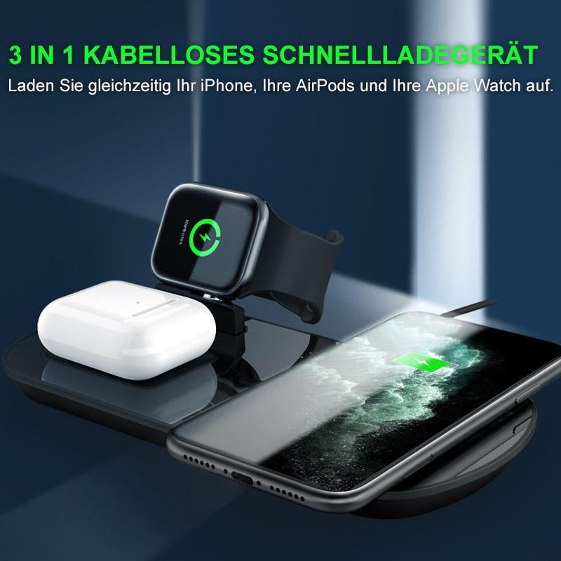 Laden Sie gleichzeitig drei Geräte drahtlos auf: Laden Sie gleichzeitig Ihr iPhone, Ihre AirPods und Ihre Apple Watch auf.
