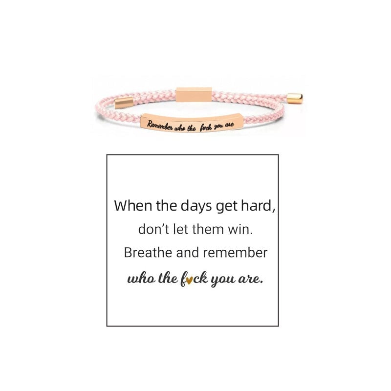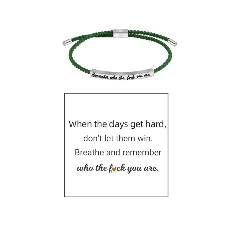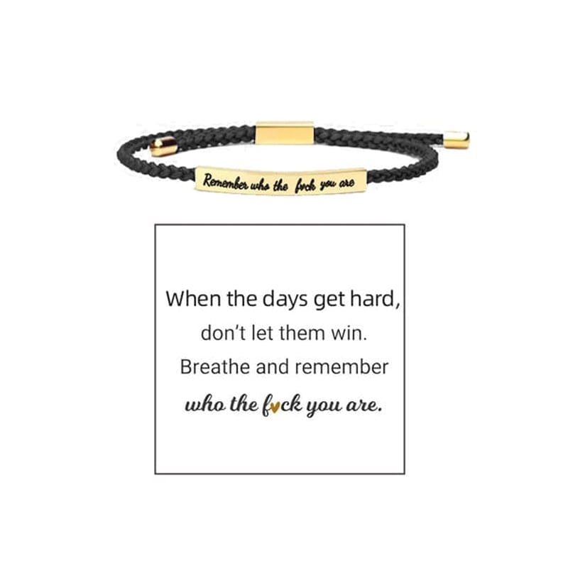 Graviert mit der kraftvollen Erinnerung „Vergiss verdammt nochmal nicht, wer du bist“, ist dieses Schmuckstück für alle gemacht, die sich für niemanden kleiner machen.
